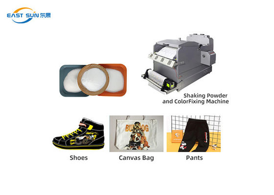 Pó DTF em impressão têxtil. Depois que um design é impresso em um filme PET DTF, o pó adesivo TPU é aplicado sobre o design impresso. Quando calor e pressão são aplicados, o pó adesivo TPU derrete e une o design ao tecido, criando uma transferência durável e de longa duração.
